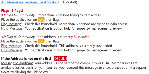 Custom instructions are written for AGS staff to correctly process and approve residents.