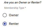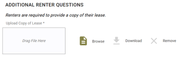 The custom online application enforces complex policy requirements, particularly for non-owner residents. The form collects Owner vs. Renter status and dynamically requires renters to securely upload a copy of their lease. This ensures that every household meets the HOA’s specific compliance and documentation requirements.